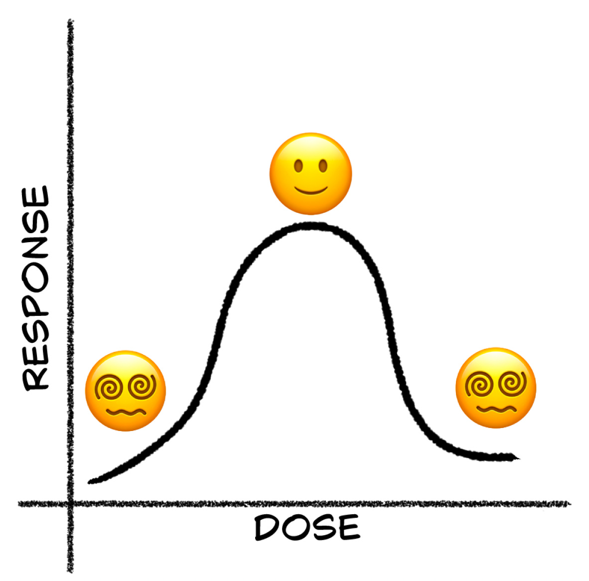 Consider a (simplified) dose-response curve for a popular psychiatric medication, like amphetamines for ADHD: